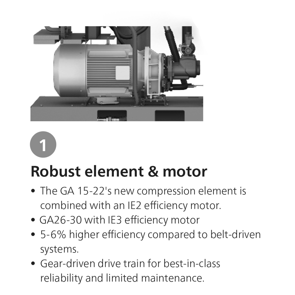 Atlas Copco’s all-in-one GA 15-30 compressor is always ready to supply high-quality air and help you tackle your daily challenges. Beating any workshop solution, the GA 15-30 keeps your air network clean and your production up and running.