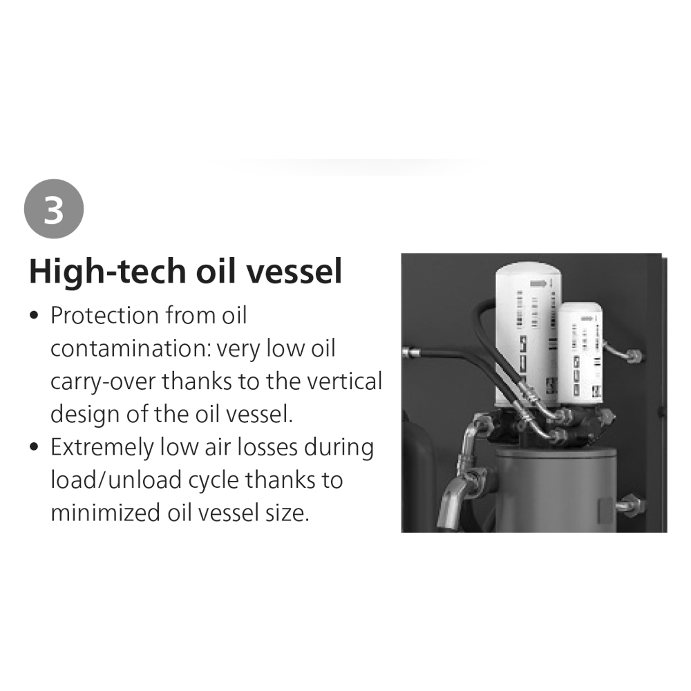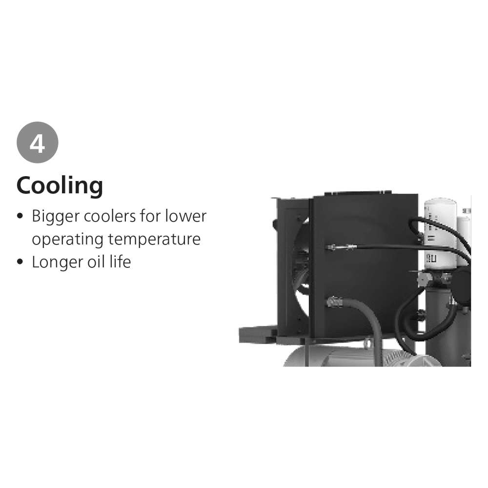 Untreated compressed air contains moisture, aerosols, and dirt particles that can damage your air system and contaminate your end product. The resulting maintenance costs can far exceed air treatment costs. GA compressors provide clean, dry air that improves your system’s reliability, avoiding costly downtime and production delays, and safeguarding the quality of your products.
