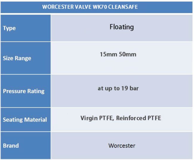 The performance of the WK70 Tube Bore Clean Valve is based on a combination of high standard specifications.
